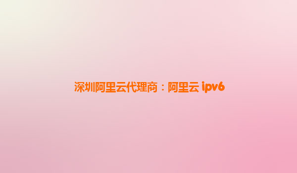 深圳阿里云代理商:阿里云 IPv6 服务的优势解析