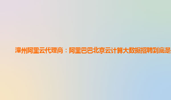漳州阿里云代理商:阿里巴巴北京云计算大数据招聘到底是什么?