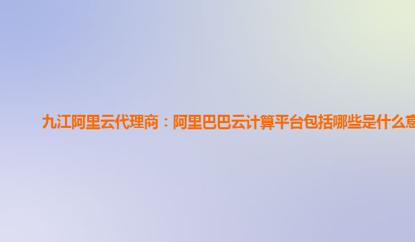 九江阿里云代理商:阿里巴巴云计算平台包括哪些?