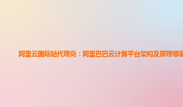 阿里云国际站代理商:阿里巴巴云计算平台架构及原理哪家好
