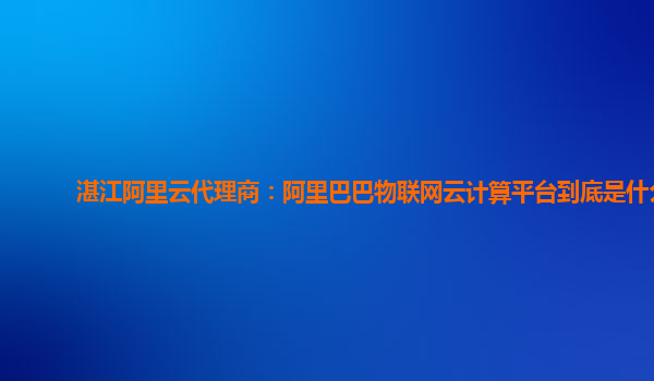 湛江阿里云代理商:阿里巴巴物联网云计算平台到底是什么