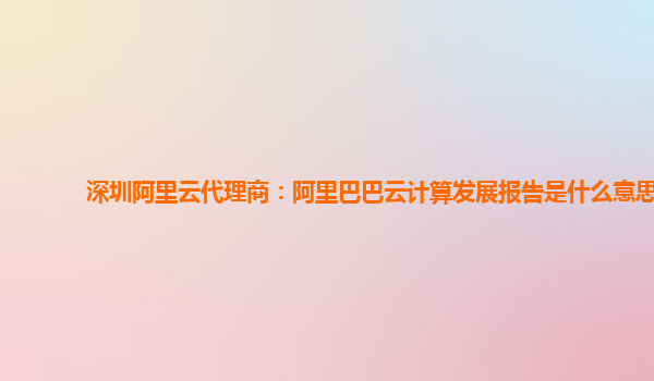 深圳阿里云代理商:阿里巴巴云计算发展报告