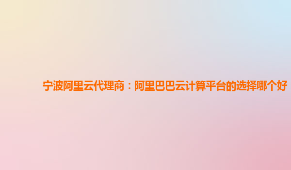 宁波阿里云代理商:阿里巴巴云计算平台的选择哪个好?