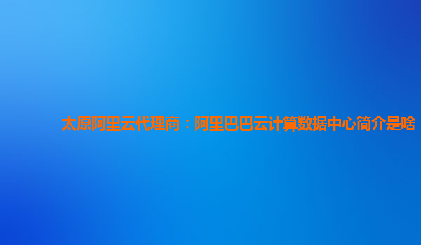 太原阿里云代理商:阿里巴巴云计算数据中心简介