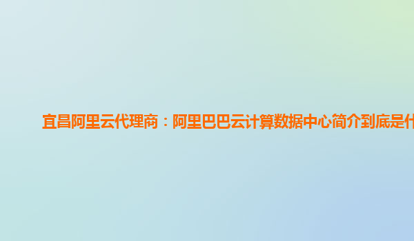 宜昌阿里云代理商:阿里巴巴云计算数据中心简介到底是什么