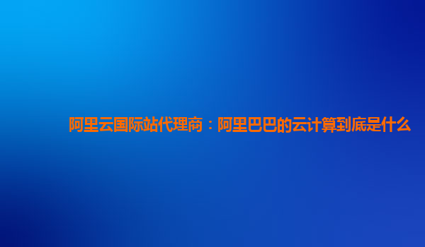阿里云国际站代理商:阿里巴巴的云计算到底是什么?