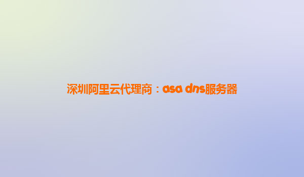 深圳阿里云代理商:asa DNS服务器的优势与使用体验