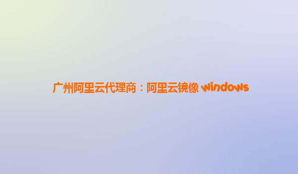 广州阿里云代理商:阿里云镜像 Windows 系统优势
