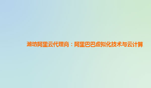 潍坊阿里云代理商:阿里巴巴虚拟化技术与云计算