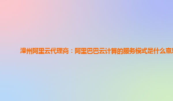 漳州阿里云代理商:阿里巴巴云计算的服务模式是什么意思