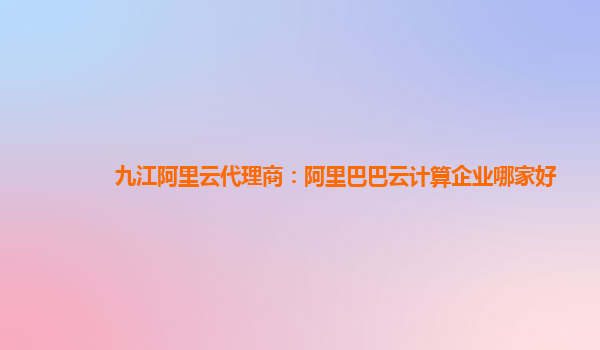 九江阿里云代理商:阿里巴巴云计算企业哪家好