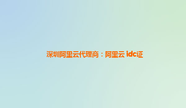 深圳阿里云代理商:阿里云IDC证的优势与应用