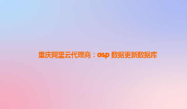 在现代互联网应用中,数据更新是至关重要的环节之一。尤其是对于重庆阿里云代理商来说,如何利用阿里云的技术优势和灵活的云服务产品进行高效的数据更新处理,已经成为了许多企业在数字化转型过程中的核心问题。本文将结合阿里云的优势,探讨如何通过ASP(Active Server Pages)技术更新数据库,并分析其在重庆及周边地区的应用前景。