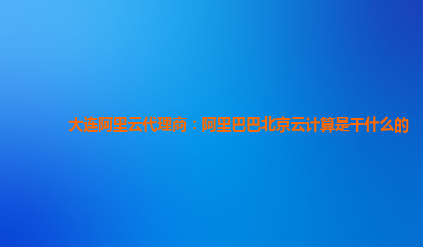 大连阿里云代理商:阿里巴巴北京云计算是干什么的