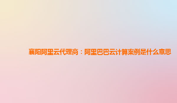 襄阳阿里云代理商:阿里巴巴云计算案例