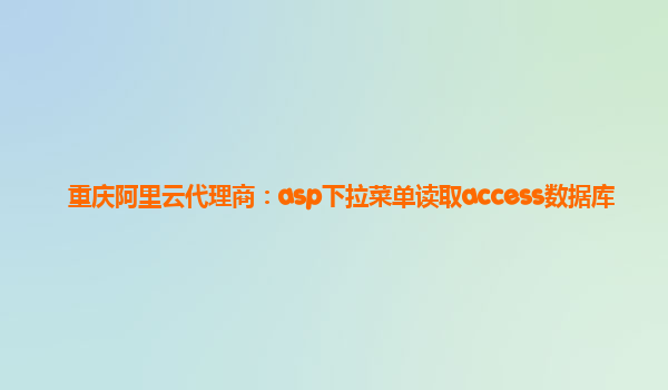 重庆阿里云代理商:ASP下拉菜单读取Access数据库