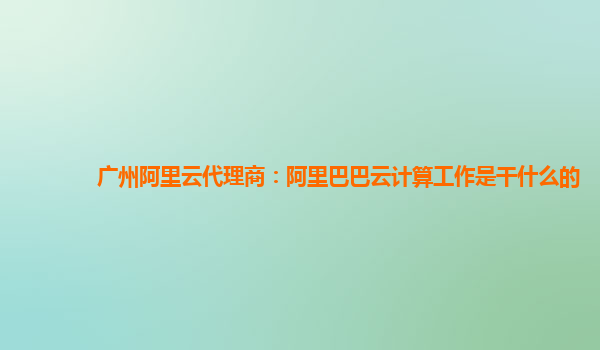广州阿里云代理商:阿里巴巴云计算工作是干什么的