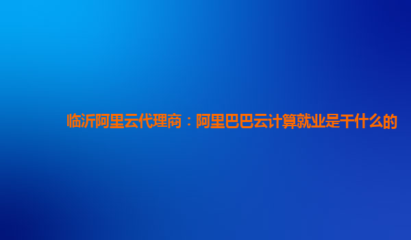 临沂阿里云代理商:阿里巴巴云计算就业是干什么的