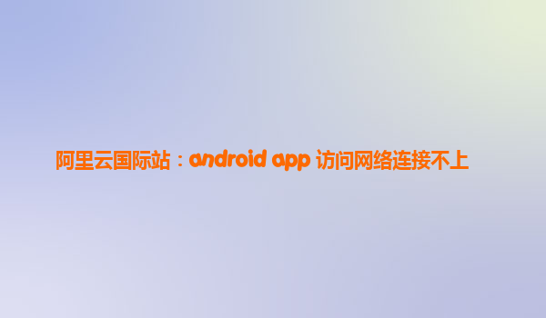 阿里云国际站:如何解决 Android App 访问网络连接问题