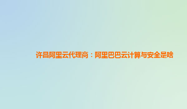 许昌阿里云代理商:阿里巴巴云计算与安全是啥?