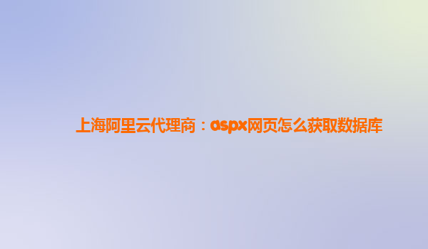 上海阿里云代理商:ASPX网页如何获取数据库