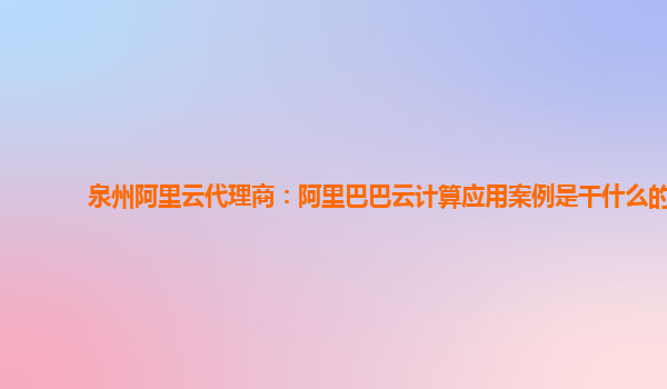 泉州阿里云代理商:阿里巴巴云计算应用案例是干什么的