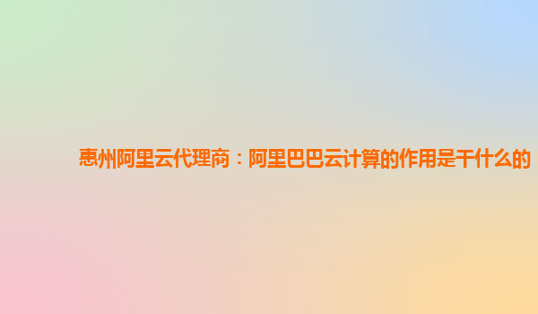 惠州阿里云代理商:阿里巴巴云计算的作用