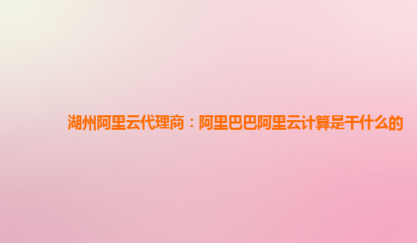 湖州阿里云代理商:阿里巴巴阿里云计算是干什么的