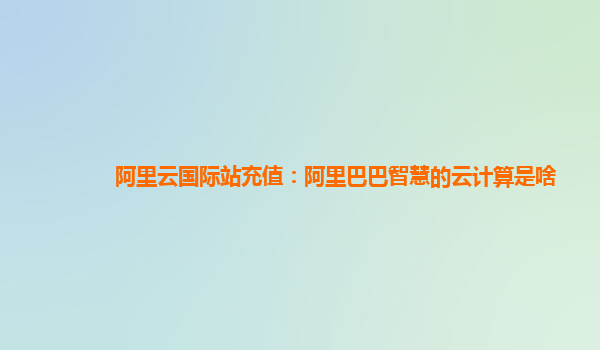 阿里云国际站充值:阿里巴巴智慧的云计算是什么?
