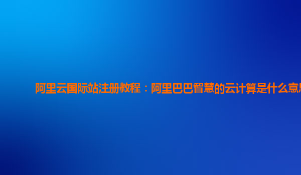 阿里云国际站注册教程:阿里巴巴智慧的云计算是什么