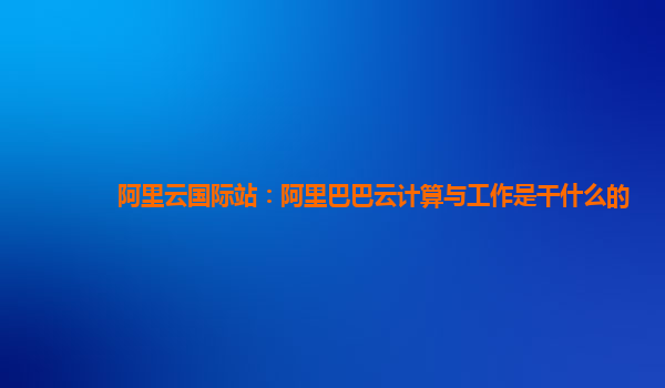 阿里云国际站:阿里巴巴云计算与工作是干什么的
