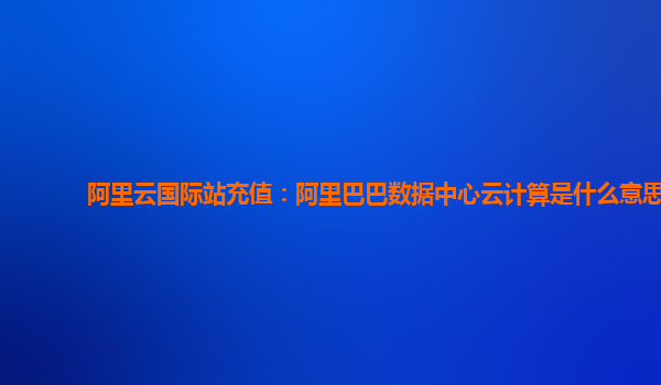阿里云国际站充值:阿里巴巴数据中心云计算的优势与应用