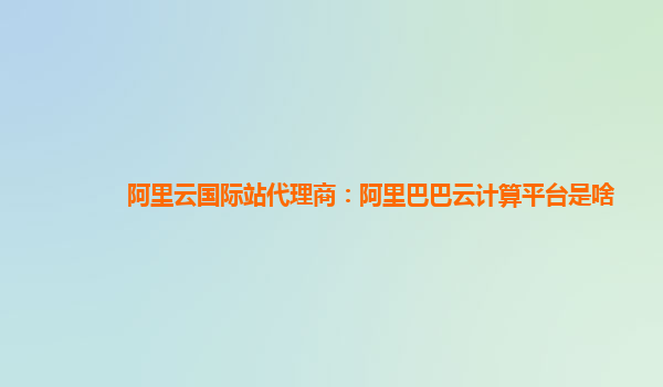 阿里云国际站代理商:阿里巴巴云计算平台是啥