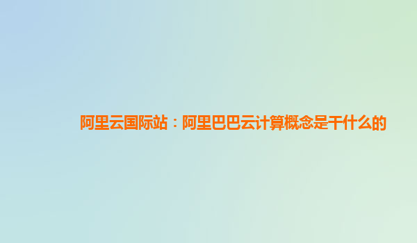 通过分析标题“阿里云国际站:阿里巴巴云计算概念是干什么的”,可以得出以下结论: