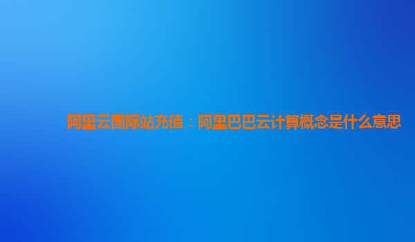 阿里云国际站充值:阿里巴巴云计算概念解析