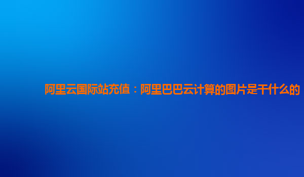 阿里云国际站充值:打造全球领先的云计算服务平台