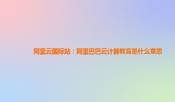 阿里云国际站:阿里巴巴云计算教育的优势与好用之处