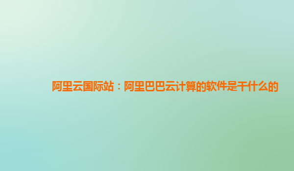 阿里云国际站:阿里巴巴云计算的软件是干什么的