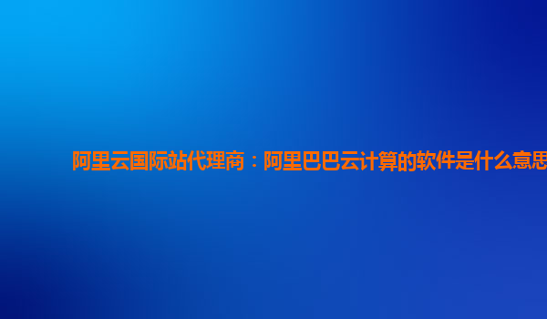阿里云国际站代理商:阿里巴巴云计算的软件是什么意思
