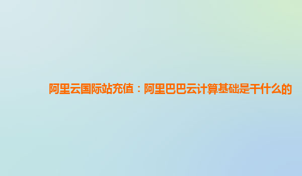 阿里云国际站充值:阿里巴巴云计算基础是干什么的?