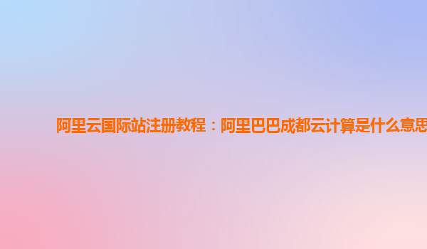 阿里云国际站注册教程:阿里巴巴成都云计算的优势与好用之处