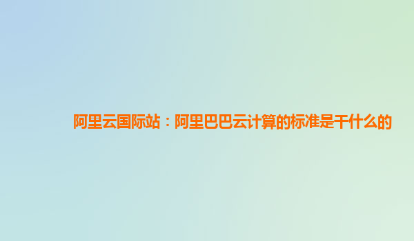 阿里云国际站:阿里巴巴云计算的标准是什么?