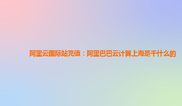 阿里云国际站充值:阿里巴巴云计算上海是干什么的