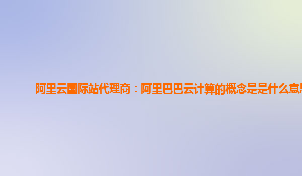 阿里云国际站代理商:阿里巴巴云计算的概念及其优势