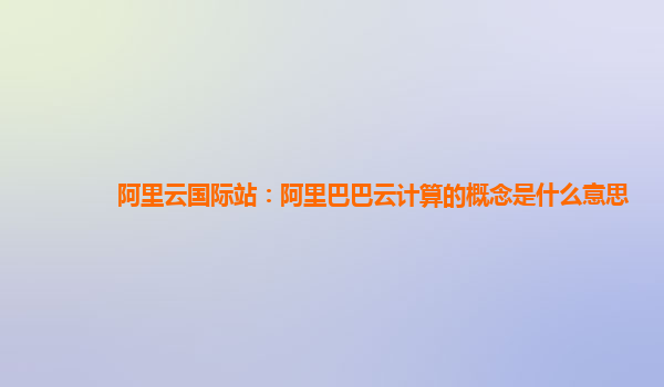 阿里云国际站:阿里巴巴云计算的概念与优势