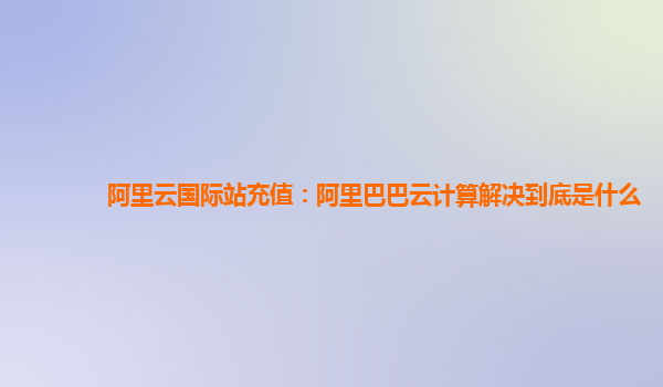 阿里云国际站充值:阿里巴巴云计算解决到底是什么
