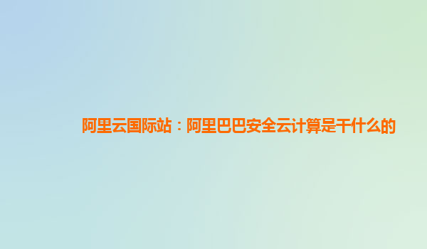 阿里云国际站:阿里巴巴安全云计算是干什么的
