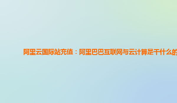 阿里云国际站充值:阿里巴巴互联网与云计算是干什么的