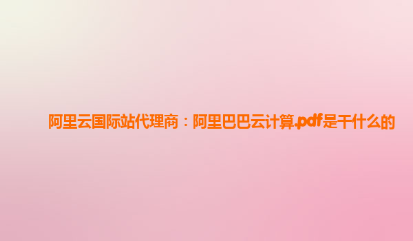 阿里云国际站代理商:阿里巴巴云计算.pdf是干什么的