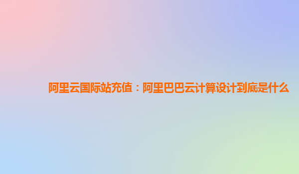 阿里云国际站充值:阿里巴巴云计算设计到底是什么